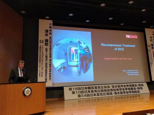 2019年6月に開催された潜水医学会では、DAN JAPAN協力医の小島泰史医師とDANアメリカの研究部門のトップであるPetar J Denoble医師によって、病院前および病院での減圧障害への適切な対応(治療)についての共同セミナーが行われました。